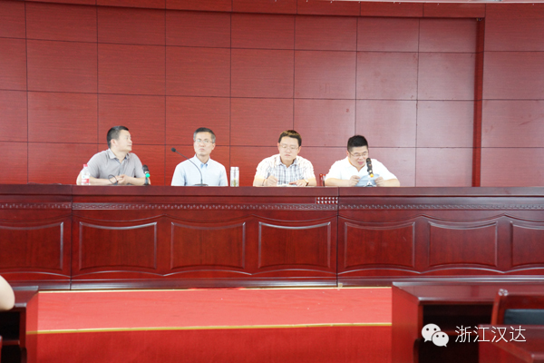 九點整,縣安監(jiān)局各企業(yè)陸續(xù)到達(dá)浙江漢達(dá),一時間竟造成交通擁堵。公司趕緊派了行政部兩大帥哥在路口指揮交通,臨時從營銷中心“借用”的兩位美女則在門口協(xié)助引導(dǎo),并及時送上礦泉水。
