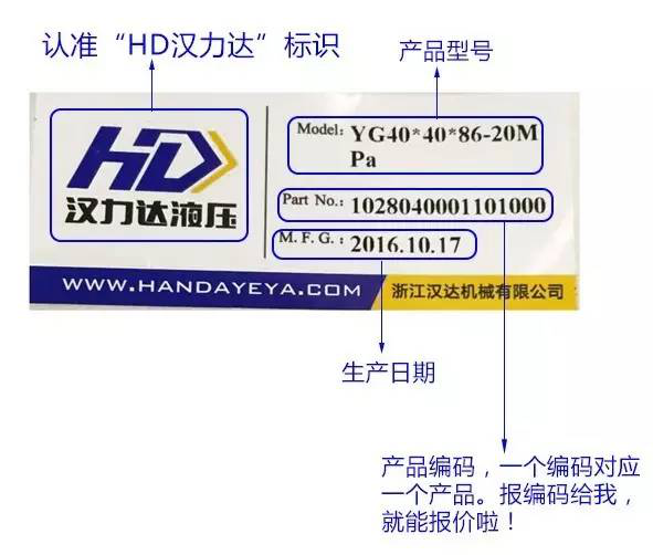 漢達液壓產(chǎn)品線的商標(biāo)漢力達以及標(biāo)簽