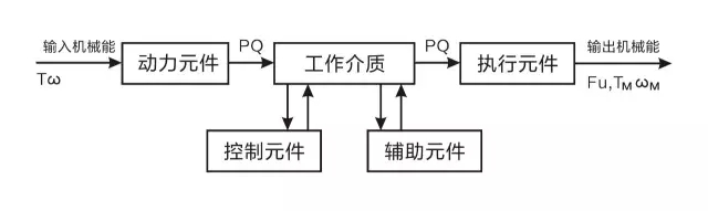 下圖用線性流程圖表示液壓系統(tǒng)的組成